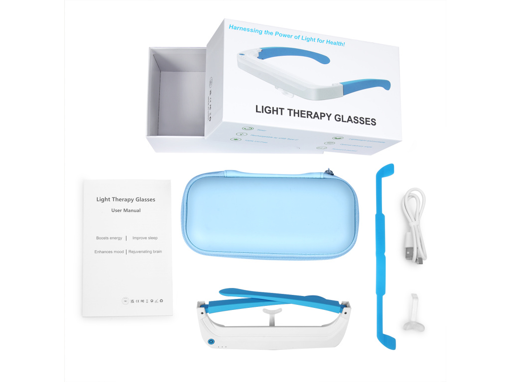 Brýle BLUE-3 Pro jsou antidepresivní lampou pomáhající se zimní únavou. Zlepšují cirkadiánní rytmus a dokáží nabudit organismus simulací pobytu na přímém slunci. Ideální pro osoby vstávající za tmy či bez možnosti pobytu na denním světle a vhodné pro osoby trpící denní únavou.