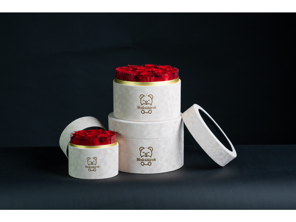 Dvanáct růží je absolutní klasikou ve světě romantiky. V našem podání však tato klasika vydrží roky, ne jen týden. Tento střední box je zlatým středem naší nabídky – dostatečně velký na to, aby ohromil, a přitom stále elegantně kompaktní. Růže jsou precizně naaranžovány do tvaru dokonalé kupole v prémiovém boxu s logem Medvídárek. Je to ideální dárek k výročí, Valentýnu nebo narozeninám