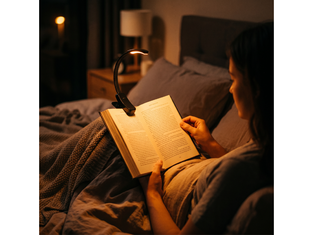 Lampička je navržená tak, aby poskytla dostatek světla na čtení knihy, aniž by zbytečně oslňovala okolí. Hodí se na čtení v posteli, na gauči, na cestách i při nočním používání tam, kde nechcete rušit partnera nebo děti.