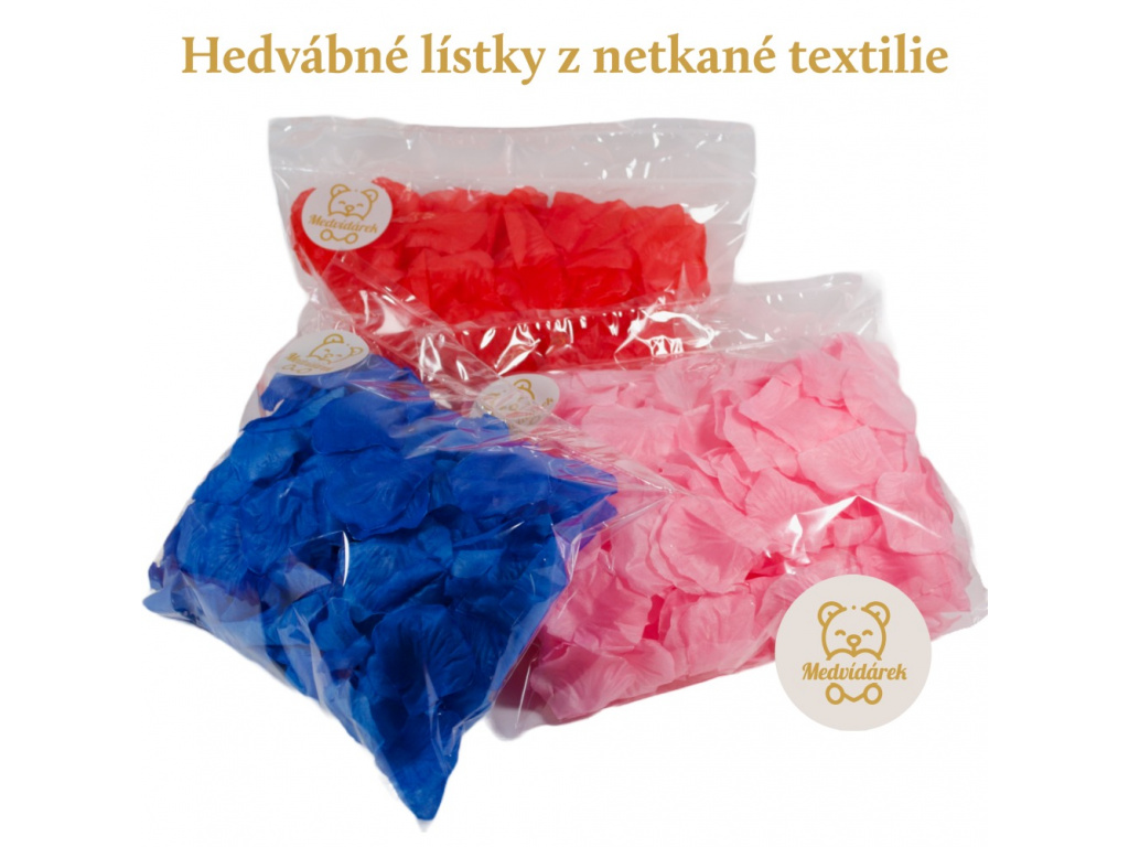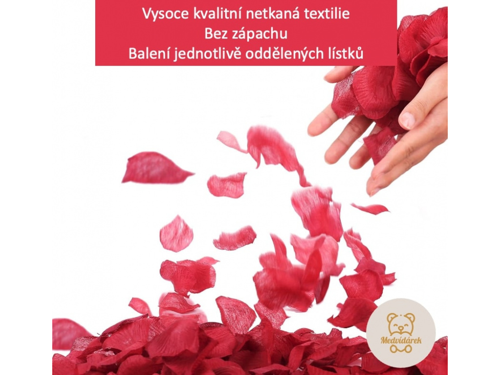 Balení obsahuje 800 ks jednotlivě oddělených okvětních lístků (není nutné ručně odlupovat kus po kusu) vyrobených z kvalitní netkané textilie.